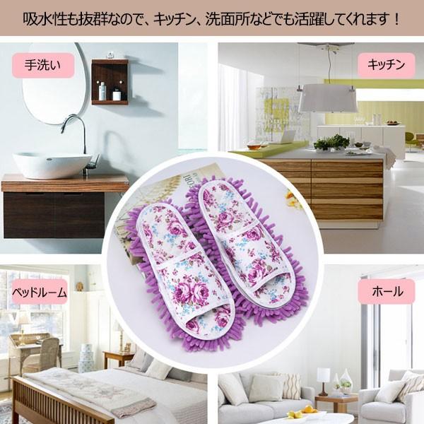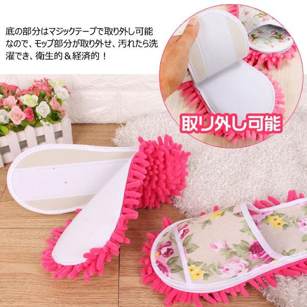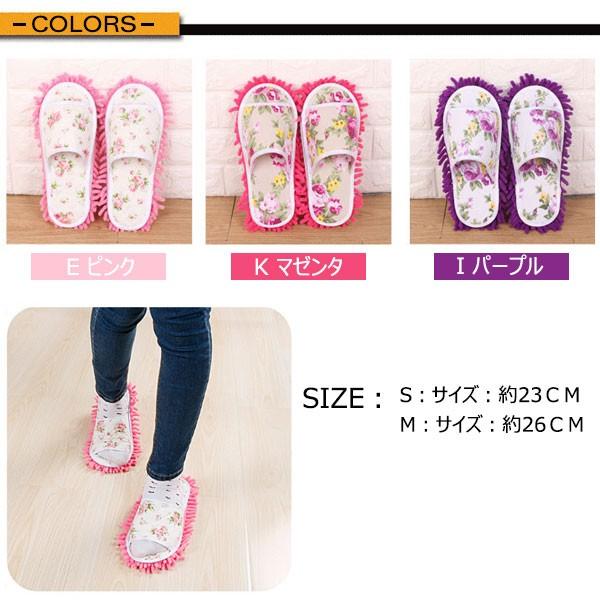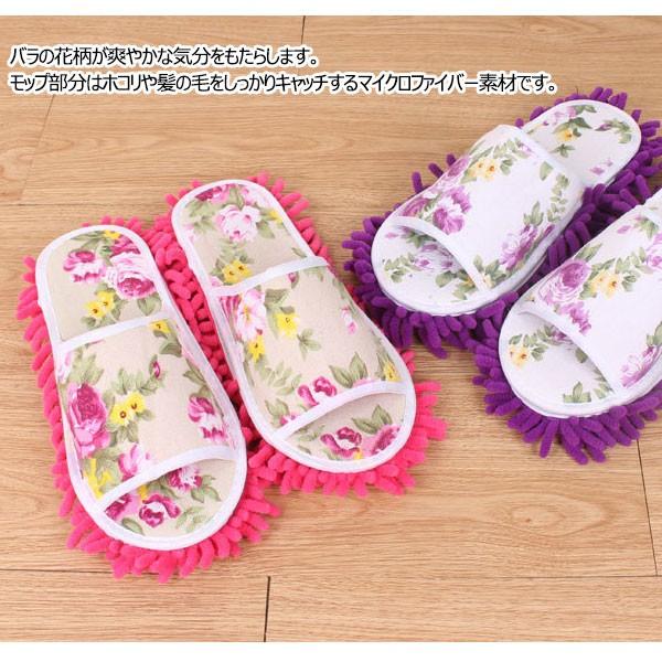 モップスリッパ お掃除スリッパ 花柄 スリッパ バラの花 マイクロファイバー 履けるモップ 翌日配達・ネコポス送料無料