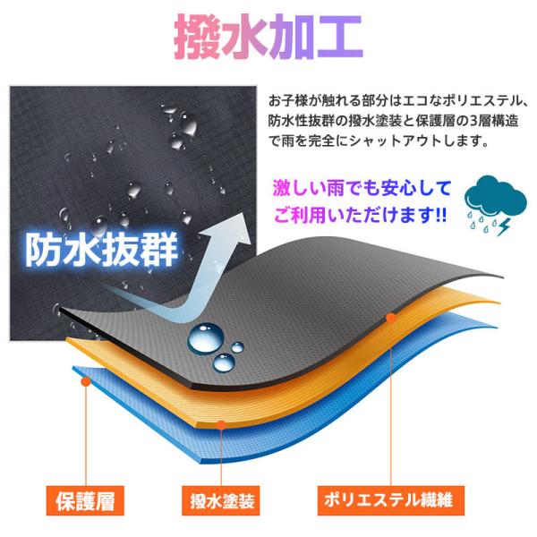 ※本製品は身長115cmまでのお子様を対象として設計していますが、ご使用になるチャイルドシートのヘッドレストの位置がレインカバーの天井高さになります。ヘルメットを着用する場合などはご購入前にご確認ください。