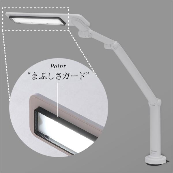 「まぶしさガード」採用で、手元は明るく、光源はまぶしくない、目にやさしいLEDデスクライトです。