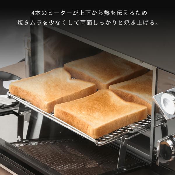 上下それぞれ2本、合計4本のヒーターがまんべんなく加熱し、焼きムラを抑え焼き上げます。