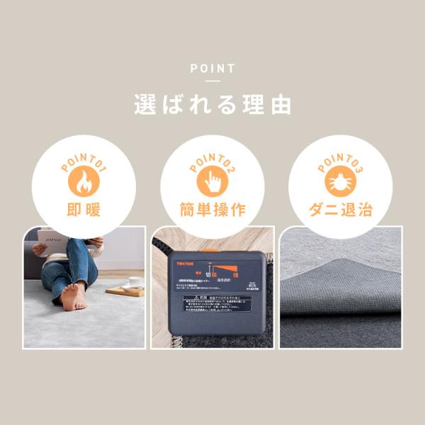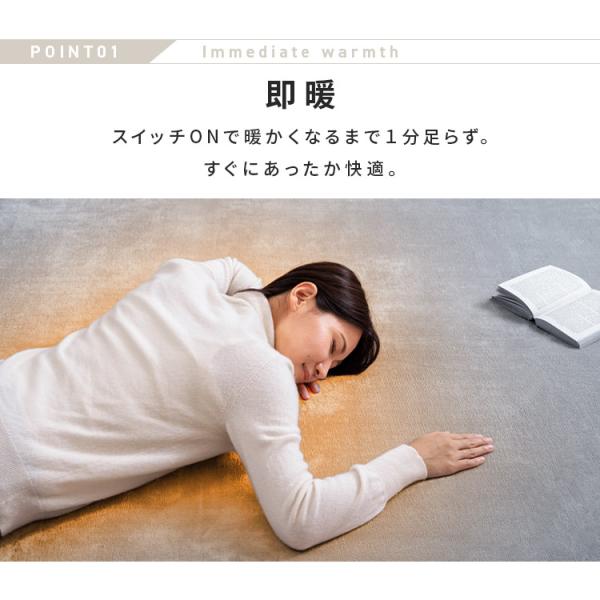 ※本体表面温度は、当社のカーペットカバー(マイヤー)をかけて室温20℃で畳の上にカーペットを広げ、3kgの荷重を加えた状態での測定値です。カバーの種類によっては表面温度に違いがあります。