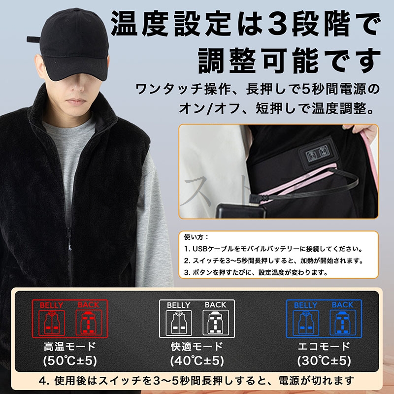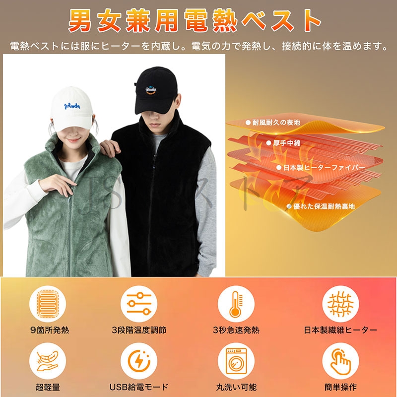 ボアフリース 電熱ベスト【2箇所独立隠しスイッチ】9箇所発熱 バッテリー選択可能 前後独立温度制御 3段階温度調節 ヒートベスト ヒーター付きベスト 男女兼用