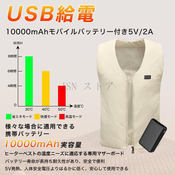 電熱ベスト 10000mAh/20000mAhバッテリー選択可 Vネック 3段階温度調節 ヒーターベスト 軽量 電熱ウェア ヒーター付きベスト 防寒着 男女兼用 暖房ベスト 冬