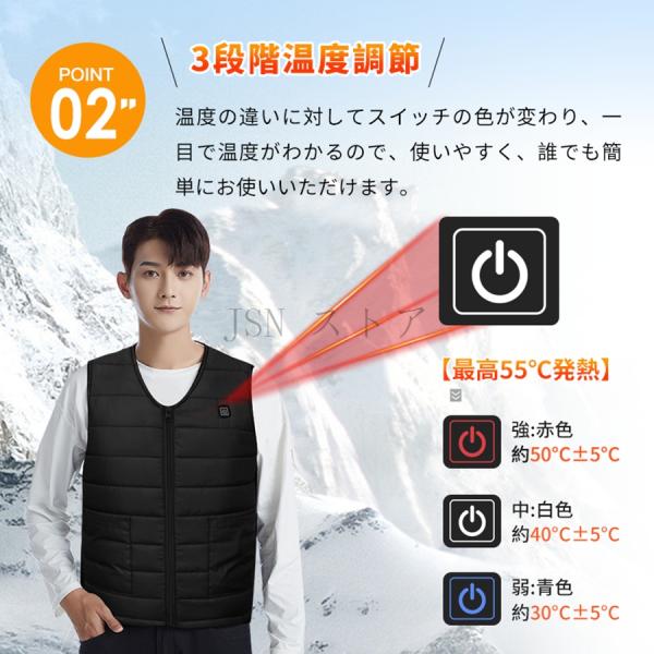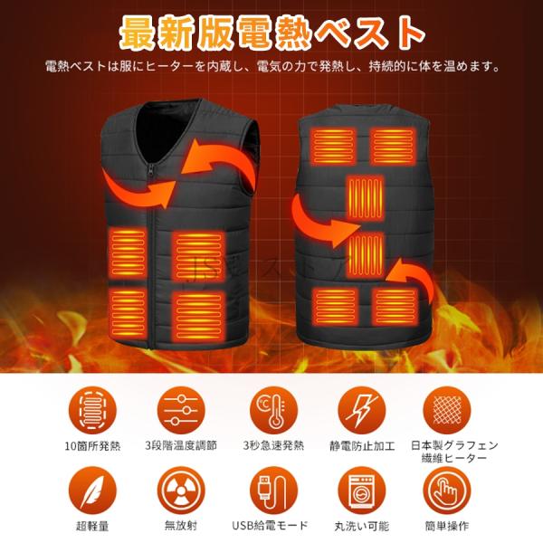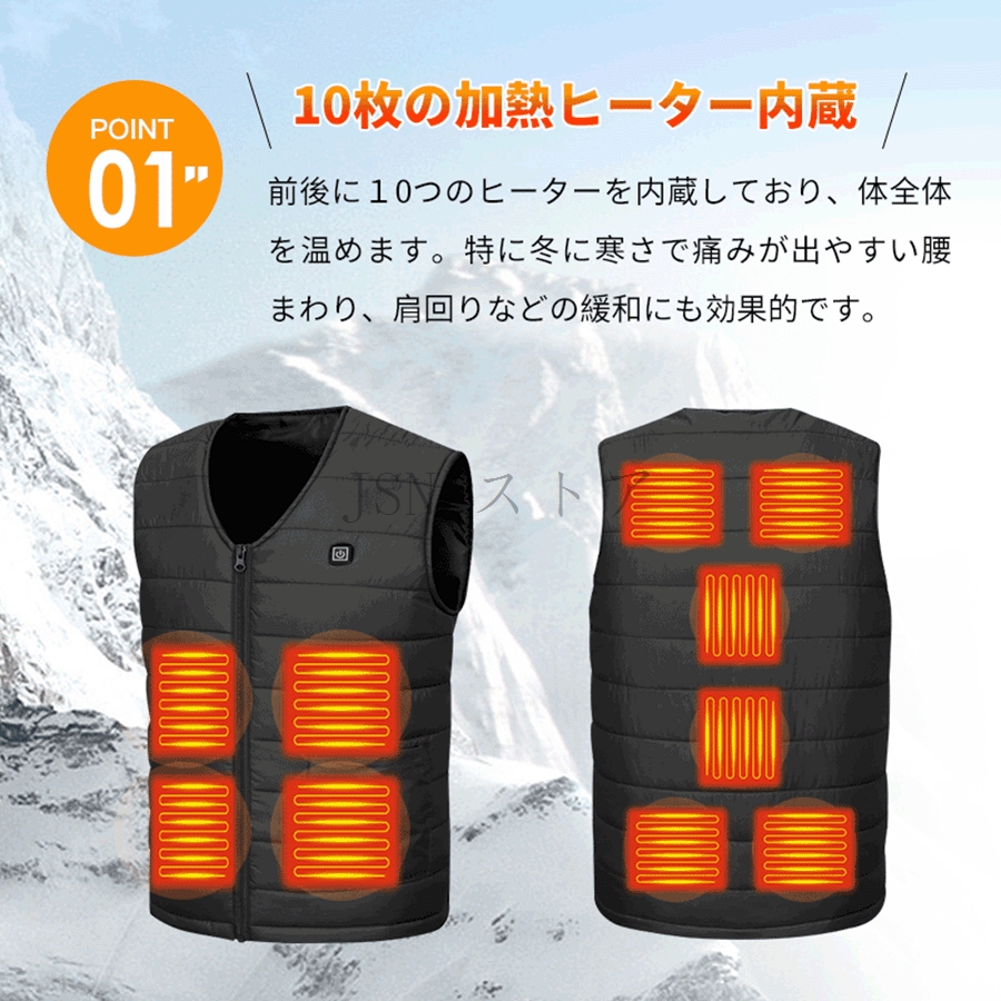 電熱ベスト 10箇所発熱 10000mAh/20000mAhバッテリー選択 Vネック 3段階調温 ヒーターベスト 電熱インナーウェア ヒーター付きベスト 男女兼用防寒着 暖房ベスト