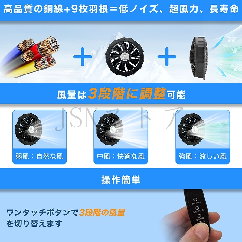 ●空調ウェアは水洗い可能ですが、洗濯前に、必ず電池、ファン、電源ケーブルを取り外してください。
