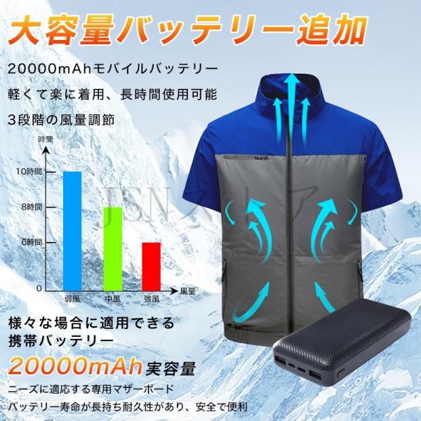 空調作業服 半袖 4つファンホール 20000mAhバッテリー選択可 最長10時間使用 作業服 大風量 USB給電 3段階風速 熱中症対策 電動ファン付きウェア 瞬間冷却 夏用