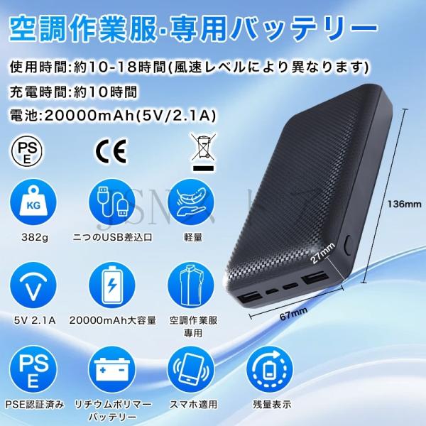 【バッテリー】 20000mAh:弱(約10h)、中(約8h)、強(約6h)