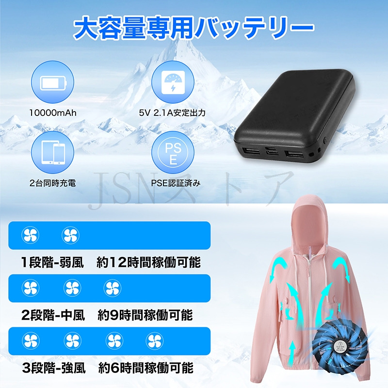レディース 空調作業服 長袖 10000mAh/20000mAhバッテリー 最長18時間使用 ファン付き作業服 大風量 3段階調節 作業着 冷却服 夏 熱中症対策 電動ファンウェア