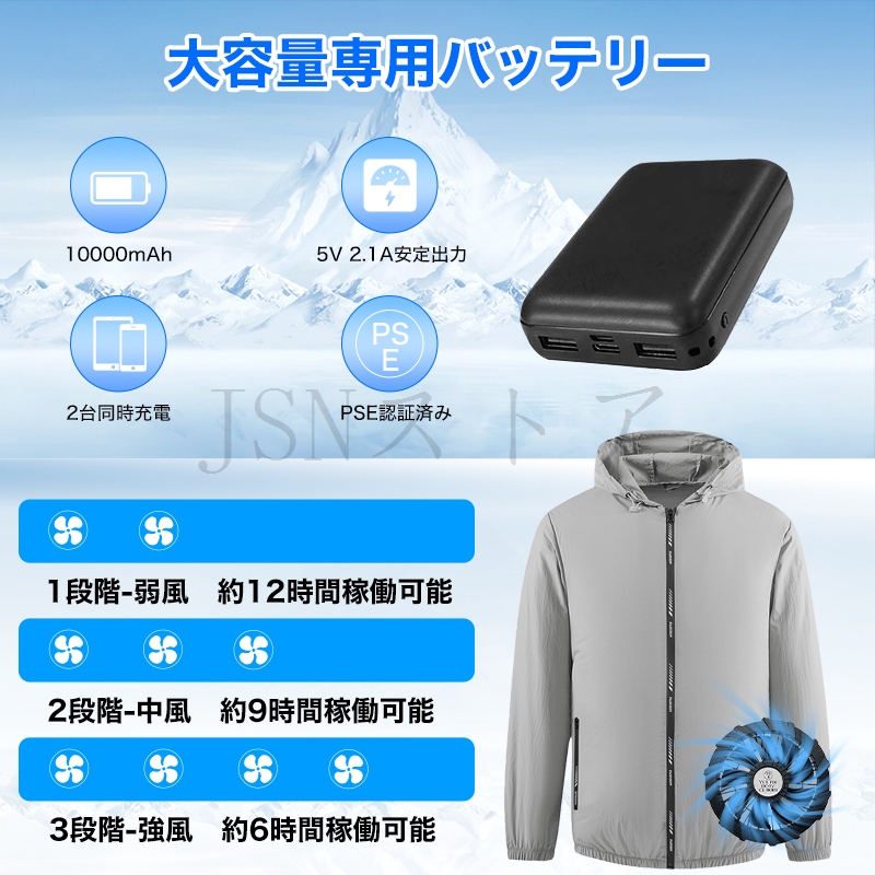 空調作業服 長袖 男女兼用 10000mAh/20000mAhバッテリー 最長18時間使用 ファン付き作業服 大風量 3段階調節 作業着 冷却服 夏用 熱中症対策 電動ファンウェア
