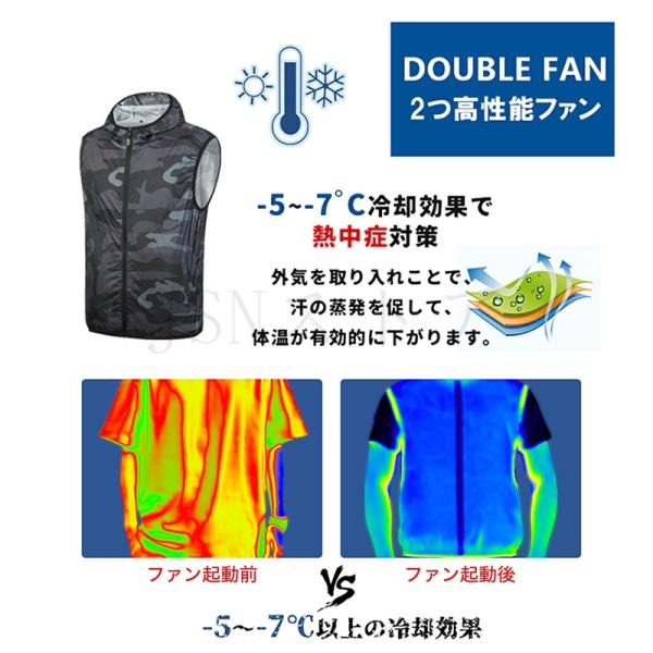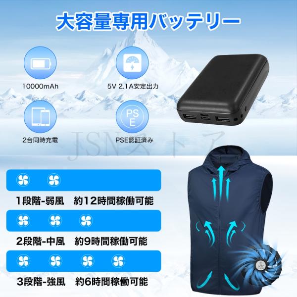 ファン付きベスト 空調作業服 10000mAh/20000mAhバッテリー選択 3段階風量調節 冷風ベスト フード付き 作業着 扇風機付き 熱中症対策 メンズ 電動ファンベスト