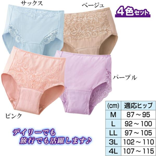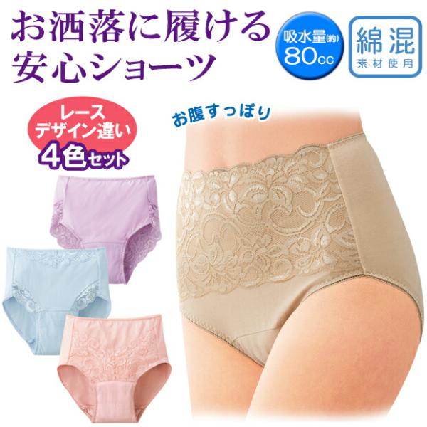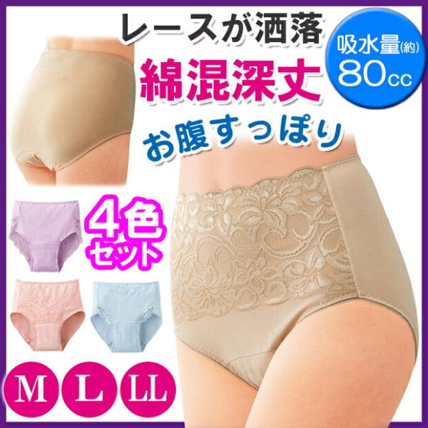 4枚セット 女性用 尿漏れパンツ M L LL 失禁ショーツ レディース 下着 インナー 旅行時 失禁パンツ 尿モレ 綿混深丈スタンダード安心ショーツ4色組