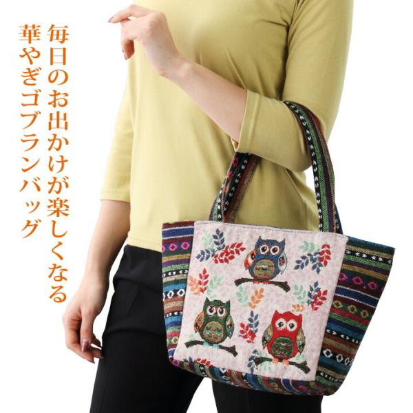 レディース バッグ ハンドバッグ 手提げバッグ 上品 ゴブランバッグ ふくろう 花柄 ゴブラン織 ゴブラン織りバッグ