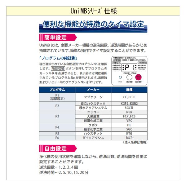 ■ 主要メーカー機種の逆栓回数、逆洗時間があらかじめ搭載。簡単な操作でタイマ設定することができます。