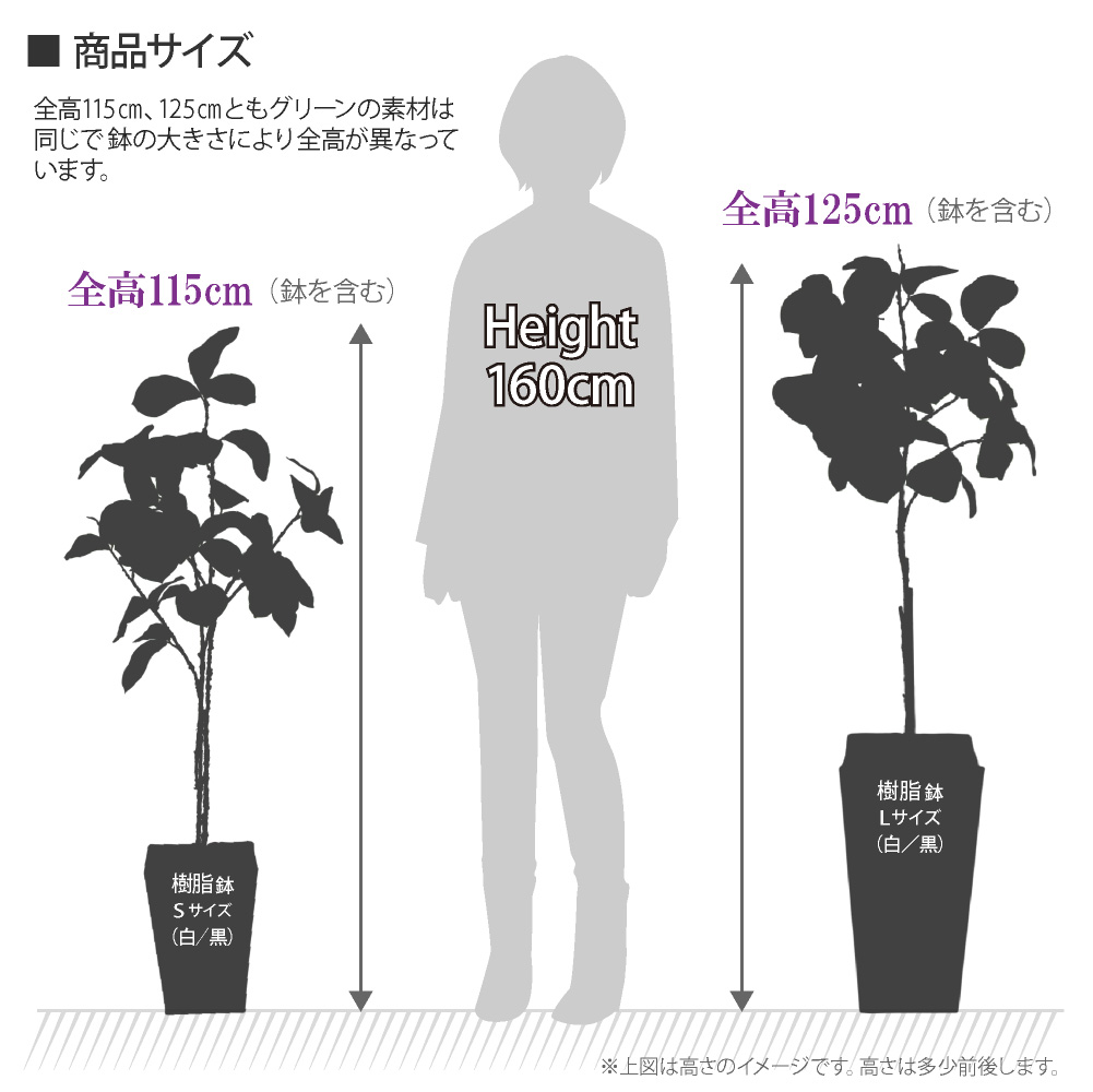 ■サイズ:本体(鉢含む)=高さ約115cm、鉢=Sサイズ(上辺20cm・下辺14.5cm・高さ27cm)