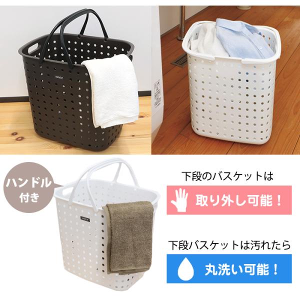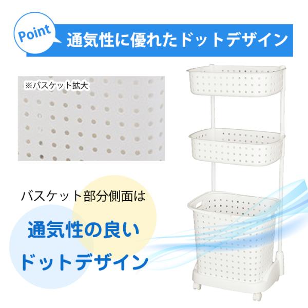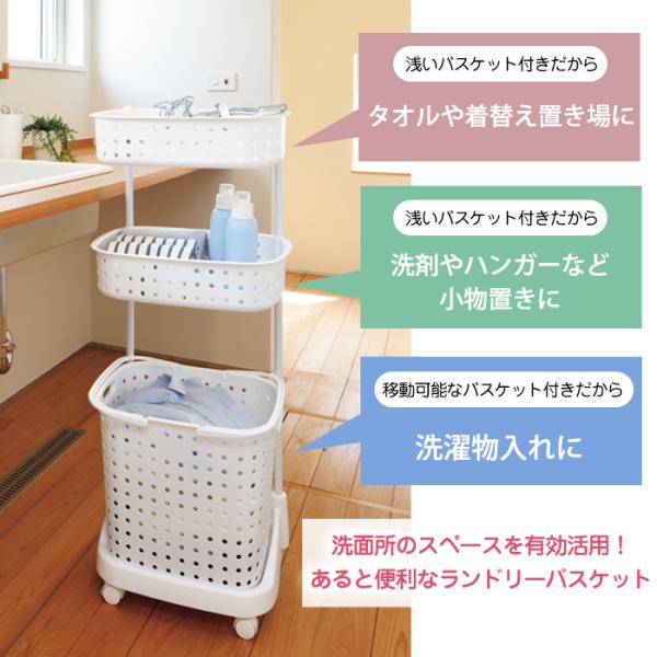 収納ボックス ランドリーバスケット 3段 ランドリーラック 収納 洗濯ラック 洗濯かご 洗濯物入れ(レクエア 3段) 収納ケース 洗濯カゴ 日本製