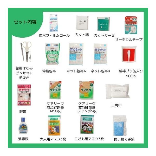 家庭での通常の小さな怪我、屋外でのリクレーション、スポーツに、地震、風水害などの手当に 必需品です。