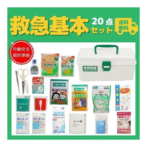 救急セット 応急手当 救急基本セット20点 白箱 持運びに楽な軽い救急箱 家庭 ファミリー 事業所 防災 労働安全衛生規則対応 救急箱 ファーストエイド