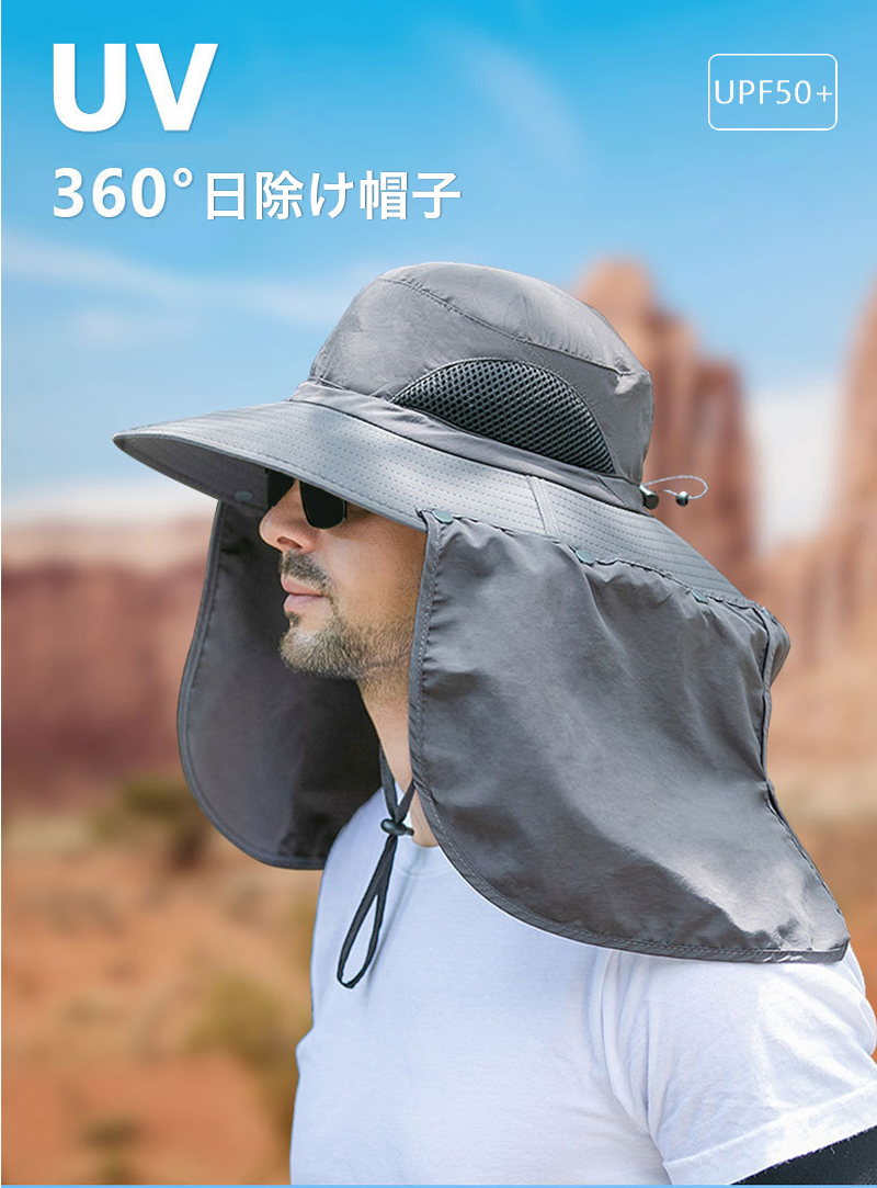 サファリハット 日よけ 帽子 UVカット 紫外線対策 メンズ レディース あご紐付き サイズ調整 通気性 海釣り 農業用 360度ガード 日焼け防止 つば広帽子 夏 UV