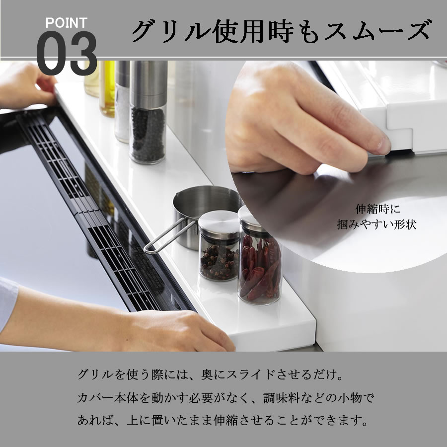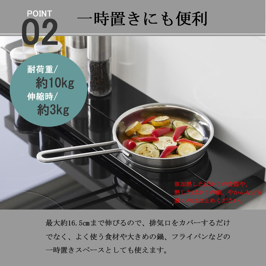 排気口カバー 奥行 フラット 伸縮 なべ置き 鍋置き フライパン 調味料 一時置き グリルカバー