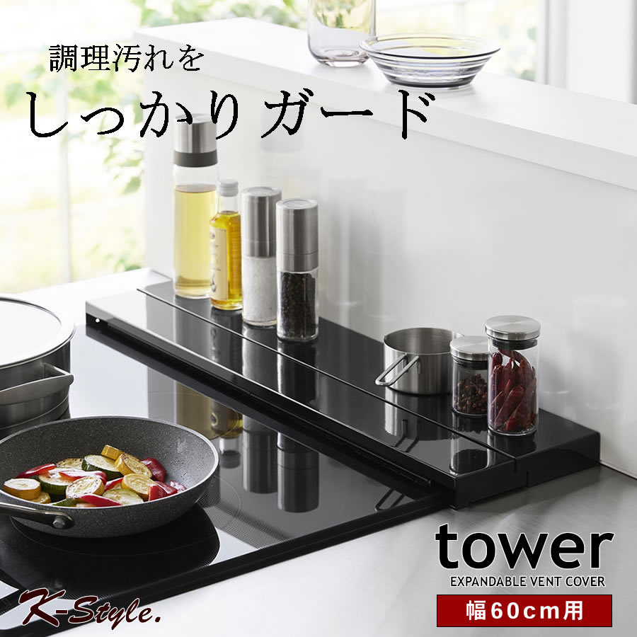 奥行伸縮排気口カバー タワー 60cmコンロ用 キッチン整理用品 フラット なべ置き 4562 4563 tower