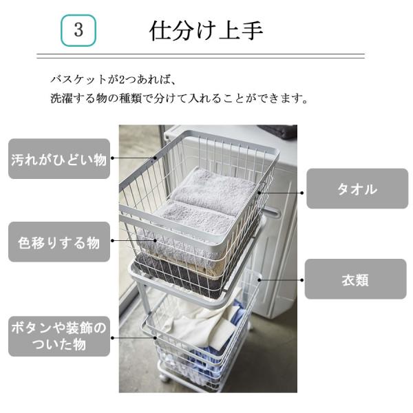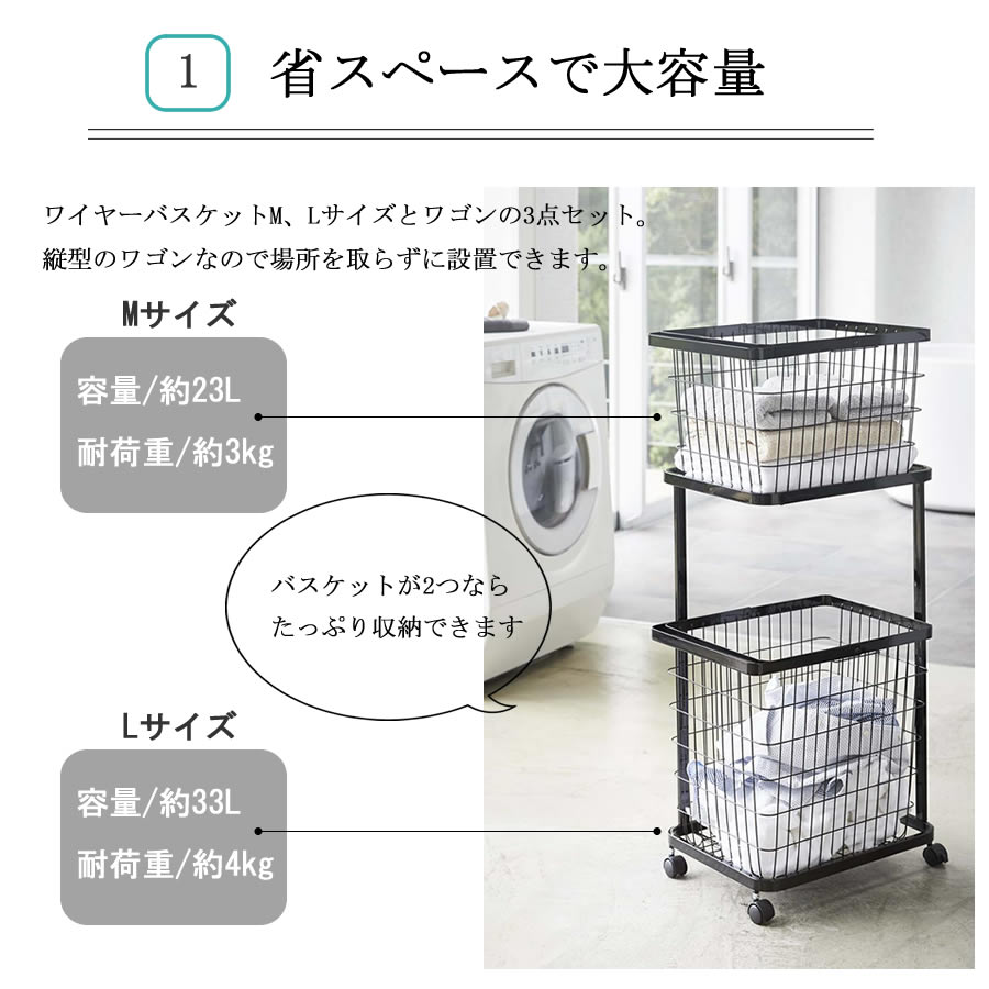 キャスター付きで動かすのもラクラク:ワイヤーバスケット 洗濯 ランドリーワゴン 洗濯物入れ