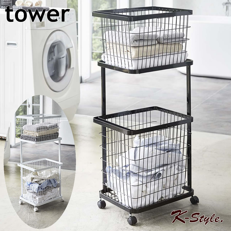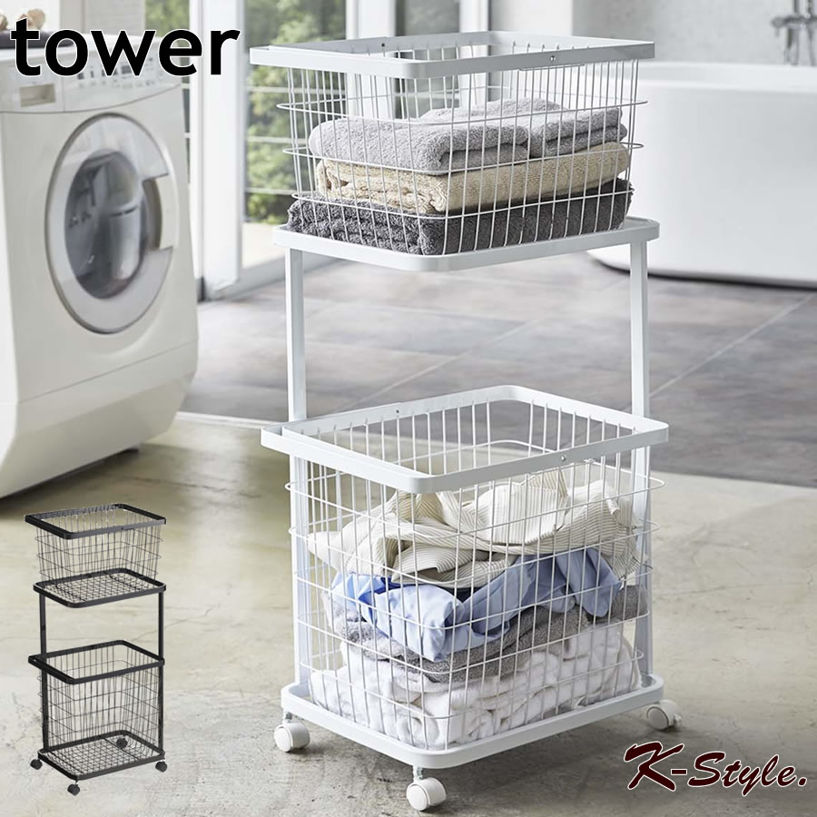 tower ランドリーワゴン+バスケット セット 199 洗濯カゴ 洗濯物入れ 2段 3351 ランドリーバスケット