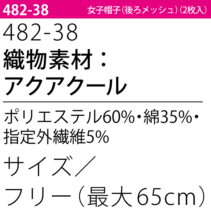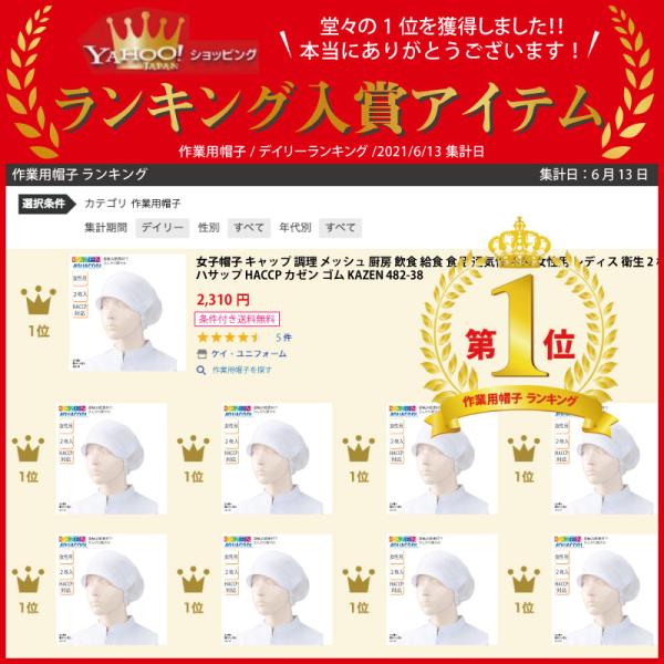 女子帽子 キャップ 調理 メッシュ 厨房 飲食 給食 食品 通気性 冷感 女性用 レディス 衛生 2枚入 ハサップ HACCP カゼン ゴム KAZEN 482-38 爆買