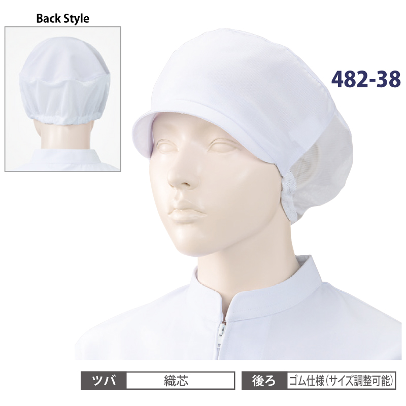 ●仕様:ツバ・織芯、後ろ・ゴム仕様(サイズ調整可能)、AQUACOOL、アクアクール、HACCP、ハサップ