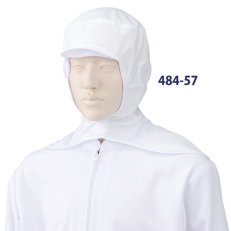 衛生キャップ フード帽子 キャップ 調理 厨房 飲食 給食 食品 吸水 耐久性 白 メンズ レディス 兼用 マスク掛け HACCP カゼン KAZEN 484-57 爆買