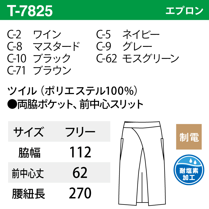 エプロン 前掛け ミドル丈 黒 ネイビー 耐塩素加工 調理 厨房 飲食 レストラン カフェ 男女兼用 制電 チトセ アルべ arbe T-7825 刺繍 プリント