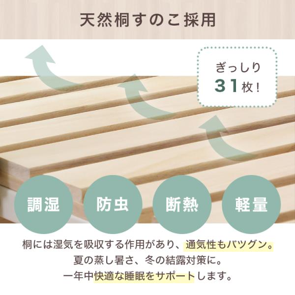 すのこ部分には湿気を吸収する作用がある、桐無垢材を使用。