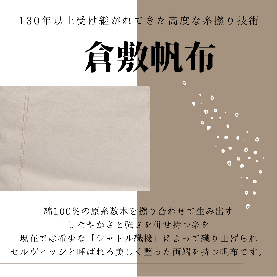 ■素材:倉敷帆布10号(パラフィンバイオ加工)×イタリアンヌメ牛革