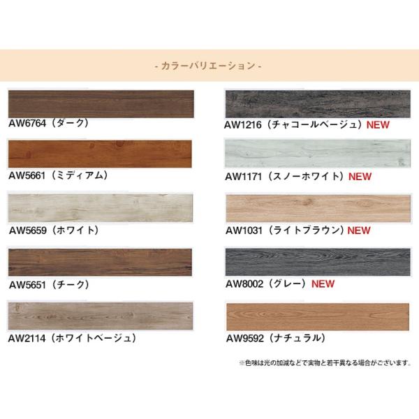 初心者向け 木目柄 全備のフロアタイル 全備フロアタイル 全備フロワータイル フロワータイル フロワタイル 全備フロワータイル 床DIY 床リフォーム 床セルフリフォーム 床材 AW-5659 AW5659 AW-9592 AW9592 AW-5651 AW5651 AW-2114 AW2114 AW-5661 AW5661 AW-6764 AW6764 AW-1171 AW1171 AW-1031 AW1031 AW-1216 AW1216 AW-8002 AW8002 裏面にノリが付き裏紙をはがして貼るだけで施工完了 簡単に床・壁に貼り付けることができる塩ビタイル 簡単 表面は塩ビ 傷つきにい 水や油をはじく 汚れが染み込まない 置くだけより安心 天然木調のエンボス(凸凹)加工が本物の木のような質感の便利なアイテム かんたん施工 らくらくリフォーム 木目 床材 木目調 天然 シールのように裏紙を剥がして貼る施工 必要目安枚数 江戸間)1畳11枚 2畳22枚 3畳33枚 4畳44枚 4.5畳50枚 5畳66枚 6畳77枚 本間)1畳13枚 2畳26枚 3畳39枚 4畳52枚 4.5畳59枚 5畳65枚 6畳78枚]WOOD ウッド 木目フローリング材 ずれない シール 貼るだけ 女性でも簡単DIYリフォーム 初心者DIY シール式 ホワイト ホワイトベージュ ナチュラル ミディアム チーク ダーク おしゃれ床