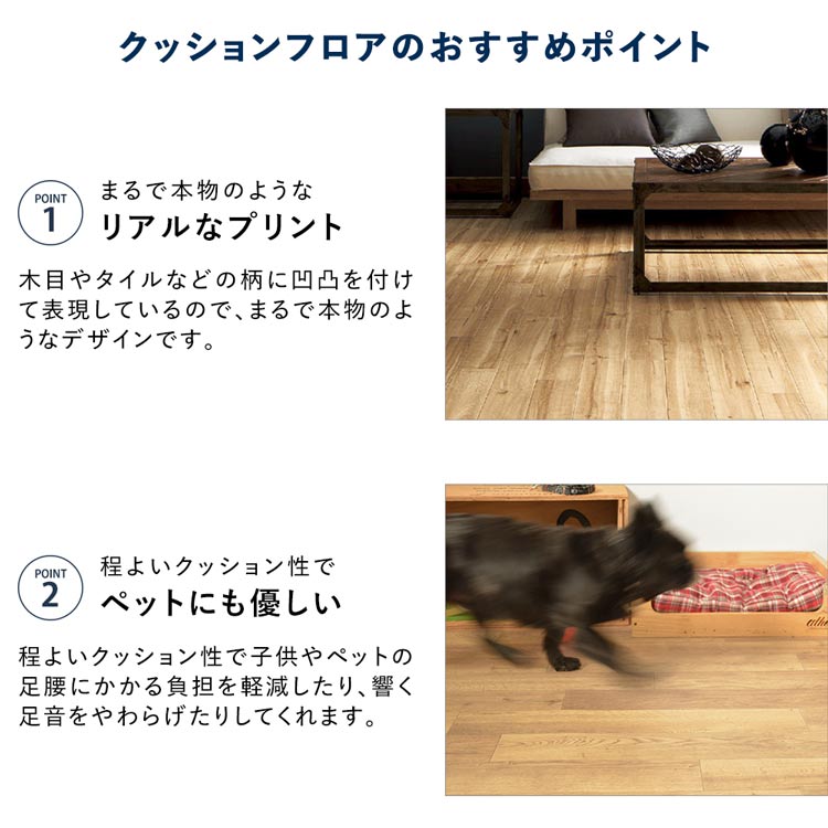 ・ハーフサイズクッションフロアとあわせてご購入の場合は、同等品番でも別商品の扱いとなりますため色の差異や柄が合わない場合がございます。