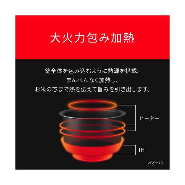 釜を包み込むように熱源を搭載。全面から加熱して、お米の芯まで熱を伝えて旨みを引き出します。