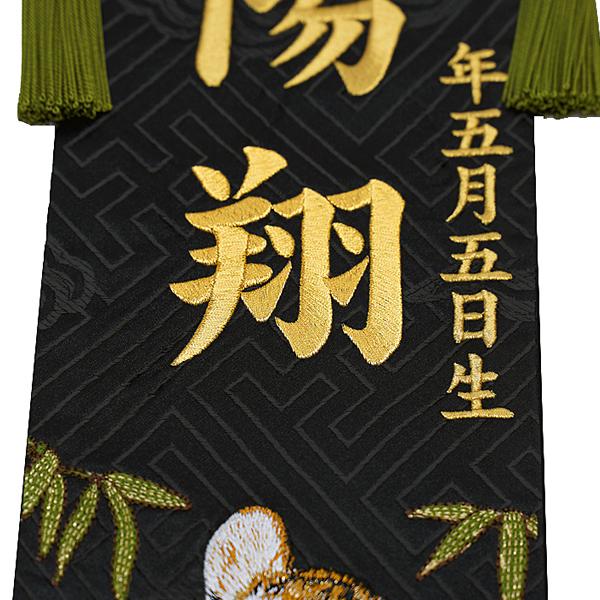 男の子用名前旗 未来子虎 金糸刺繍お名前 生年月日 総刺繍絵タペストリー 高さ45cm 端午の節句 五月人形節句用品 簡易包装無料