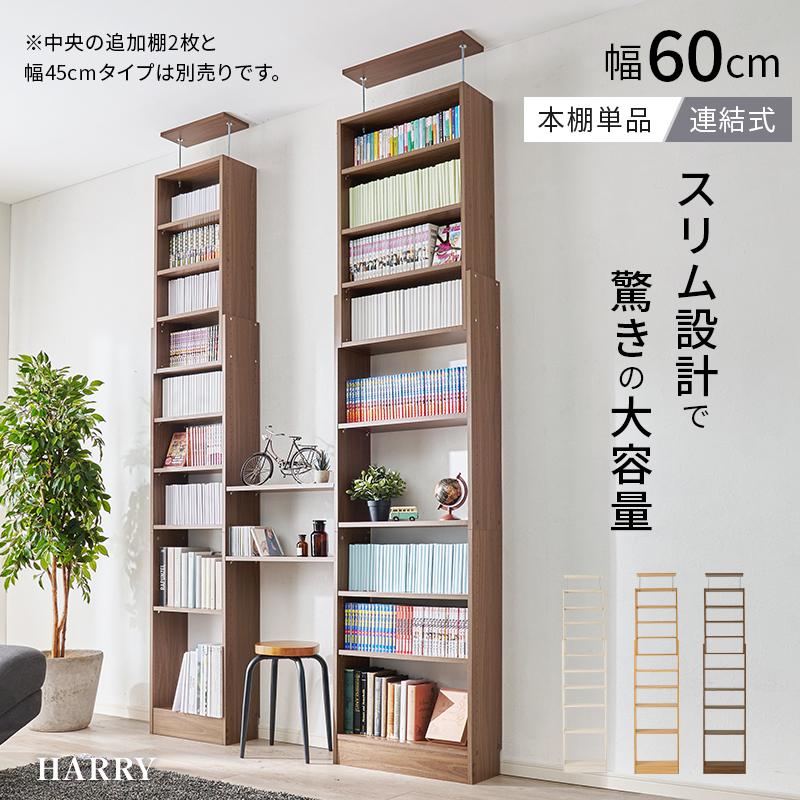 本棚 大容量 スリム 多機能 幅60 薄型 突っ張り棚 ラック 収納 オープンラック コミックラック おしゃれ 白 漫画 突っ張りラック ハリー