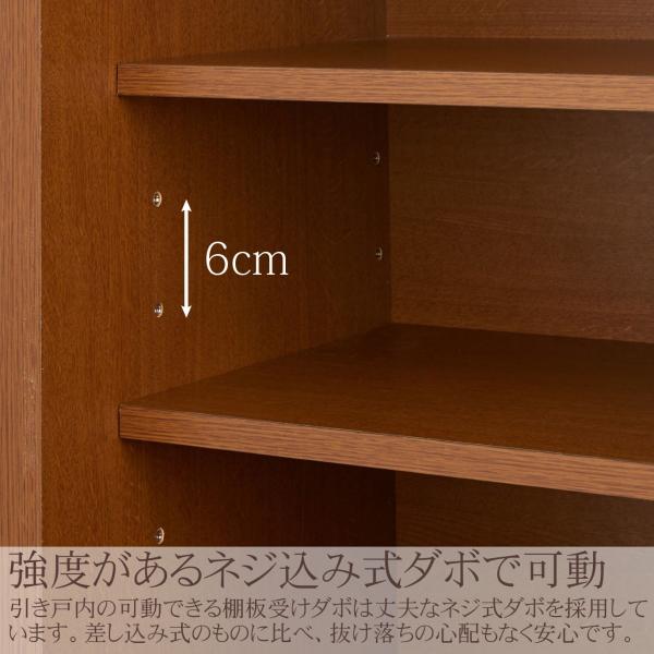 ねじ込み式ダボで棚をしっかり支え、ズレや落下を防ぐ仕様です。