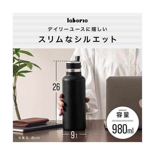 水筒 980ml ステンレスボトル ストロー付き 保冷 ストローボトル マグボトル マイボトル スリム 保冷水筒 大容量 真空断熱 無地 直飲み 持ち手付き