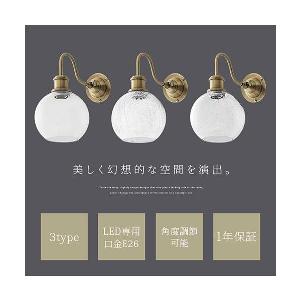 ブラケットライト ウォールライト おしゃれ LED 間接照明 丸 壁掛け 壁付け 口金 e26 泡 クラック ガラス 真鍮 透明 角度調節 noji ノジー