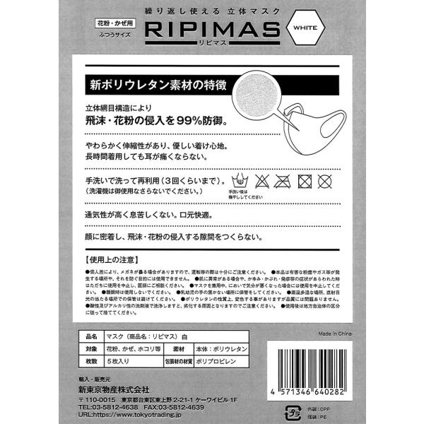 ウレタンマスク 白 立体 3Dマスク ふつうサイズ 5枚入り【10点ご注文で送料無料】リピマス 花粉・かぜ用