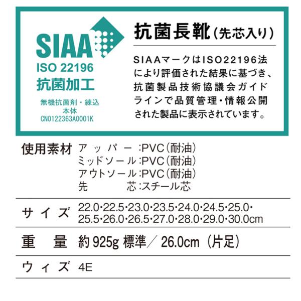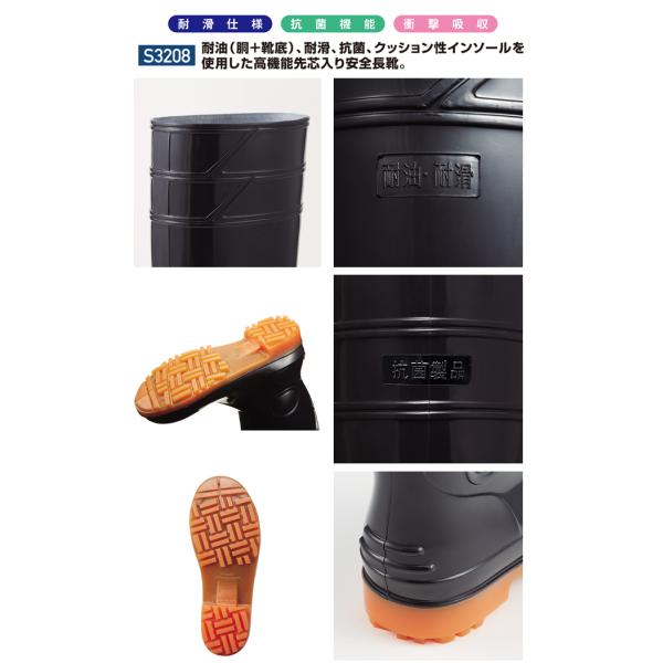 安全長靴 先芯入り 耐油 耐滑 白 黒 抗菌 安全靴 メンズ レディース 農作業 作業用 作業靴 おしゃれ 厨房 防災 4E レインブーツ / 自重堂 S3208 (先芯あり)