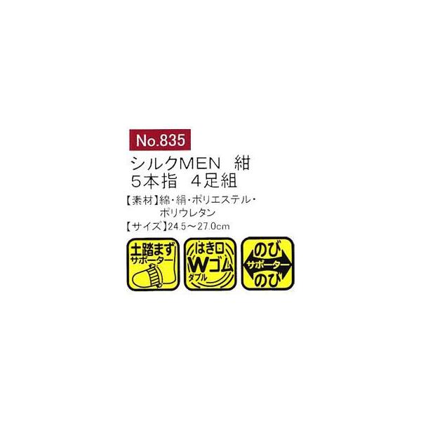 ユニワールド 靴下 シルクMEN 紺 5本指 4足組 835