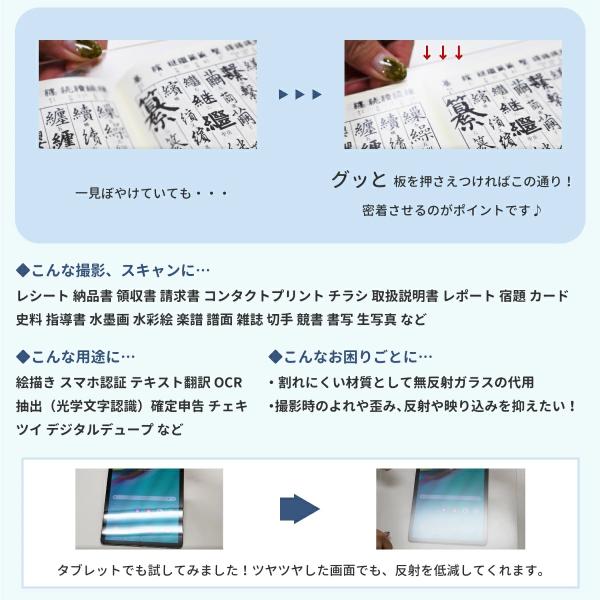 無反射ガラスと同様の使い方で、簡単に撮影やスキャンができます!確定申告時などにもご活用ください♪