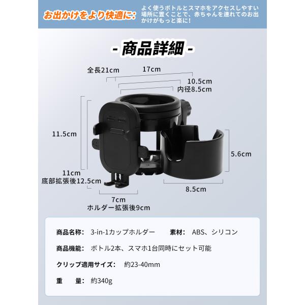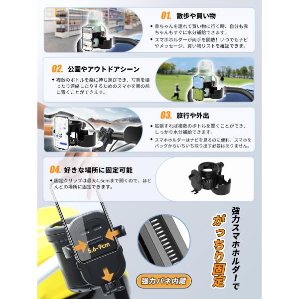 Kandar ★★★★★ 4.5(46件) スマホホルダーが両手を開放! ベビーカー ドリンクホルダー 2個 2in1 ドリンクホルダー スマホ対応 4way 赤ちゃん 哺乳瓶 カップホルダー スマホ 折り畳み プレゼント 【仕様】素材:ABS/シリコン使用シーン:スマホ&カップホルダークリップ:太さ約23-40mm対応重量:約0.34kg商品内容:ドリンクホルダー本体*1、日本語説明書*1 Kandar 人気ランキング もっと見る Kandar 商品一覧 もっと見る