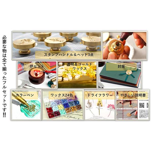 シーリングワックス セット 炉付きのAll In Oneフルセット スタンプ ヘッド 蝋封 ワックス大量 手紙 招待状 祝福 取扱説明書付き