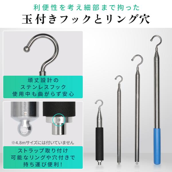 用途:錆に強く、耐熱性にも優れ、強度があるステンレスを採用。しなりの少ないロッド設計。ストラップ取り付け可能 2メートル用 爆買