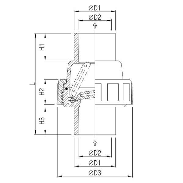 ・配管の途中に接続するタイプの逆止(逆流防止)弁です。