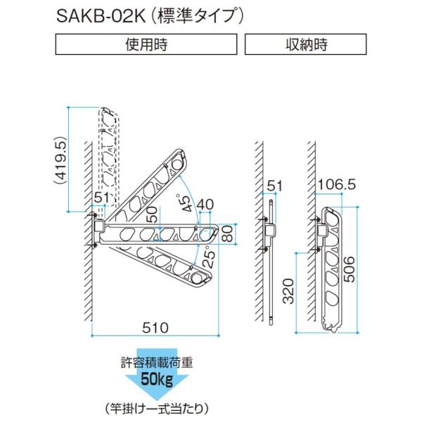 竿掛け 物干し竿受け 屋外 ベランダ DIY 物干し金物 壁付けタイプの物干し竿掛け SAKB-02K 2本入 縦収納式 標準 三協アルミ