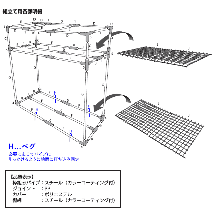棚網:スチール(カラーコーティング付)